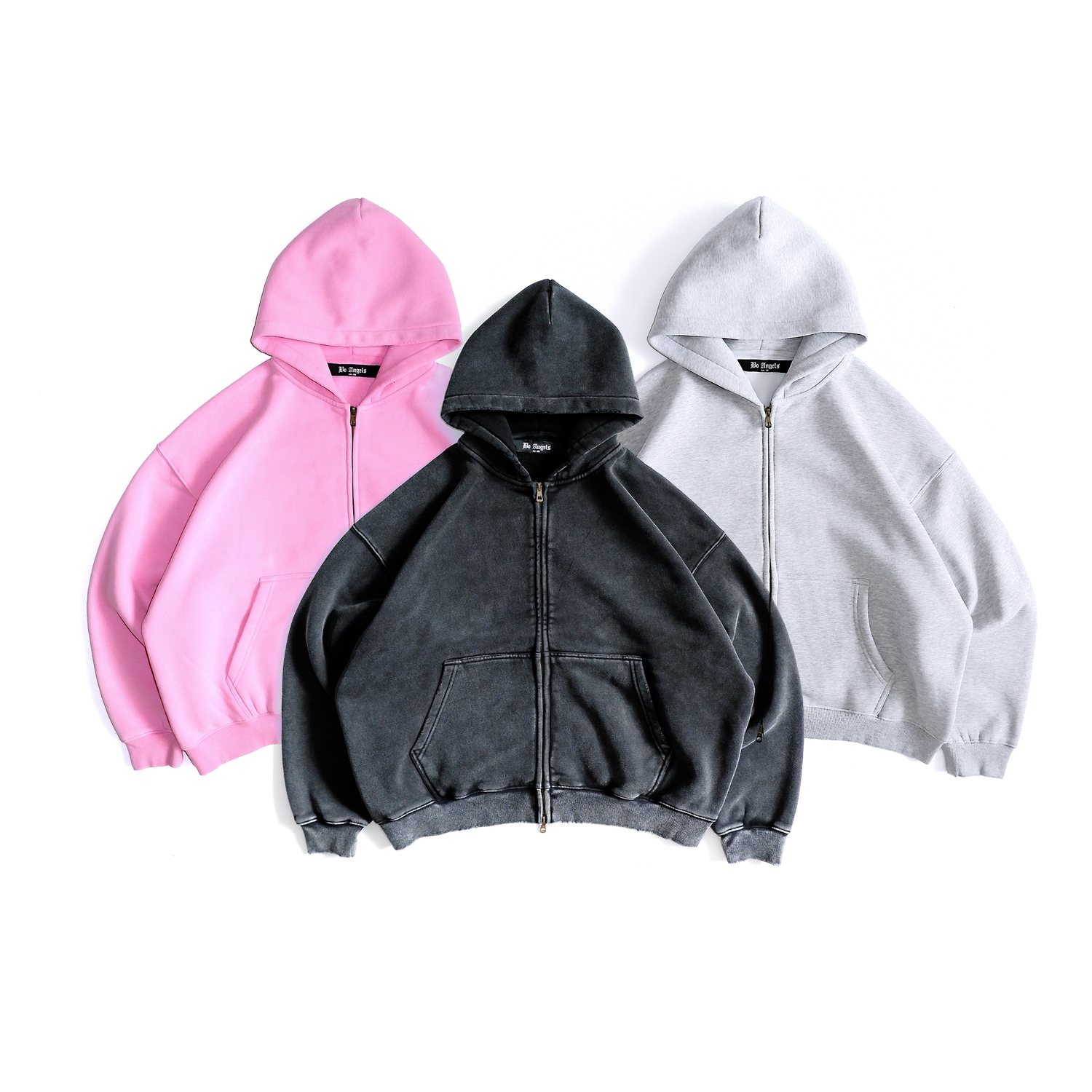 ÁO HOODIE ZIP DÁNG BOXY MÀU WASHED 370G /BO ANGELS