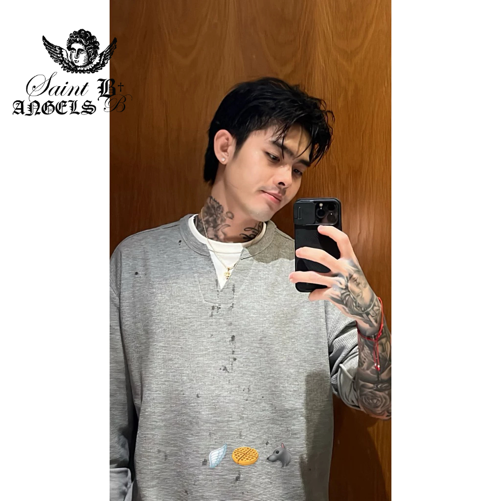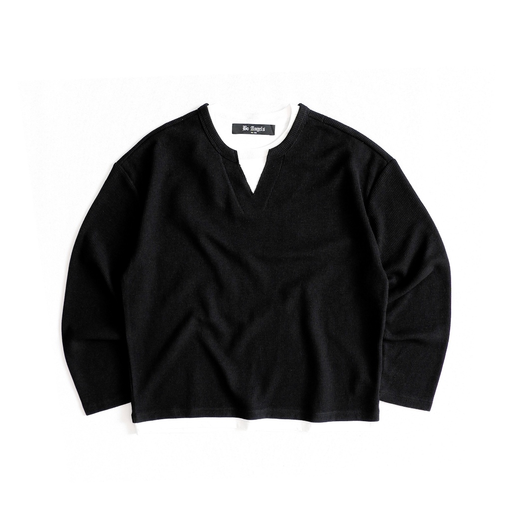 ÁO THUN TAY DÀI VẢI WAFFLE PHỐI HAI MẢNH CỔChất liệu: 85% Cotton, 15% Polyester – Vải Knit Waffle 320G, dày dặn, thoáng khí, giữ form tốt.Thiết kế: Form Boxy relaxed, tay dài, cổ phối hai mảnh tạo điểm nhấn cá tính, mang hơi hướng layer tinh tế. Chất waffle giúp bề mặt áo có độ sần nhẹ, tạo hiệu ứng thị giác độc đáo.Chiều dài dây / size / fit: Size S–XL, phù hợp dáng người 160–185cm / 50–80kg (tham khảo bảng size chi tiết).Bảo quản: Giặt máy chế độ nhẹ, không dùng chất tẩy mạnh. Lộn trái áo khi phơi để giữ màu lâu bền.