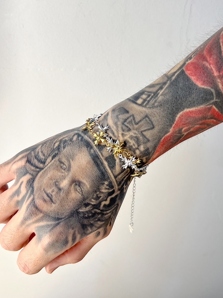 Thiết kế: Dây lắc thanh mảnh kết hợp charm chữ thập và ngôi sao nhỏ – tượng trưng cho đức tin và hy vọng trong hành trình cá nhân. Form ôm cổ tay vừa vặn, dễ phối, unisex